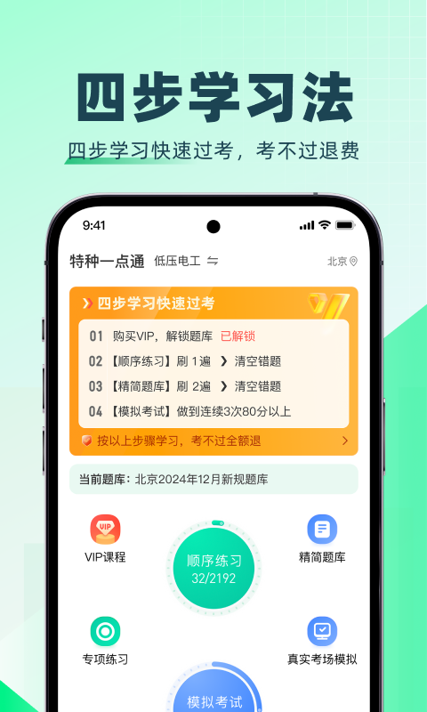 1、顺序练习:新、全、准的特种题库,紧跟考试大纲,实时在线更新;