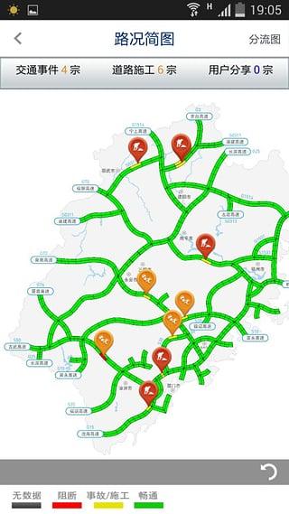 “路况简图”版块:以全省高速路网简图为基础,以颜色表示拥堵情况,直观地展示全省高速路网的通堵状态。