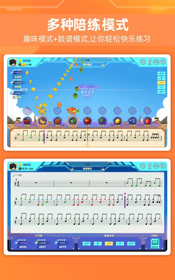 9、解决了基本功专项练习里部分内容无鼓点和节拍器的声音问题。