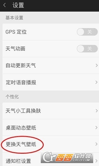 4.进入到设置的页面中,我们可以看到有个个性化模块,在个性化模块下面有个更换天气壁纸,点击天气壁纸