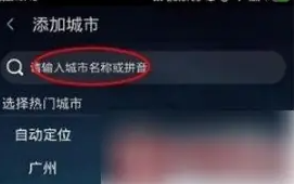 在新弹出的界面中,找到屏幕上方的搜索栏,在当中输入我们需要添加的城市名字,即可完成新的城市的添加。
