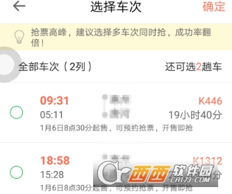选好日期,点击指定车次,可以选择自己想要购买的车次;