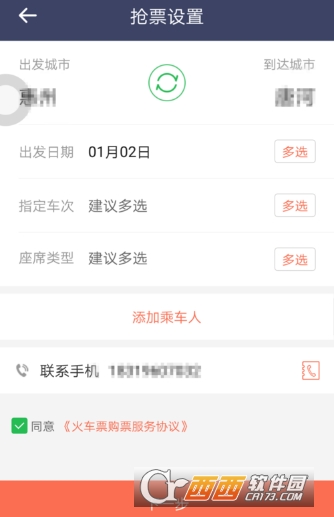 点击右上角,+号,出现出发站和终点站及时间;