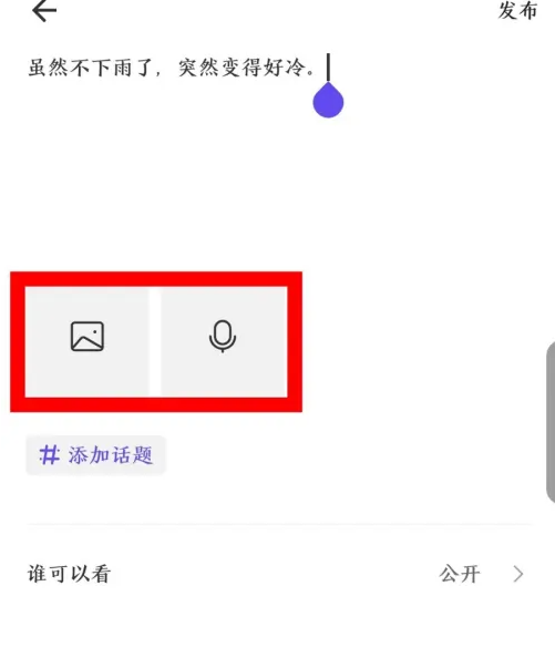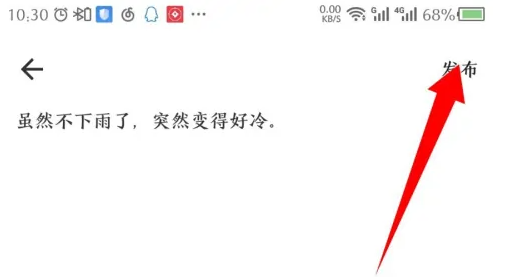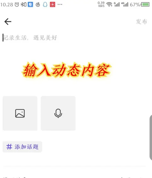 编辑完动态内容后,点击右上角的发布。如图所示