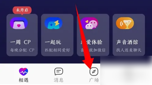 在软件的底部,点击打开广场。如图所示