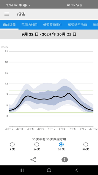 * 查看报告,如在目标范围内的时间和日趋势图
