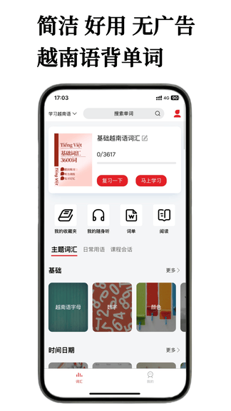 该应用支持离线使用,用户可以在没有网络的情况下进行学习,方便随时随地掌握越南语词汇。