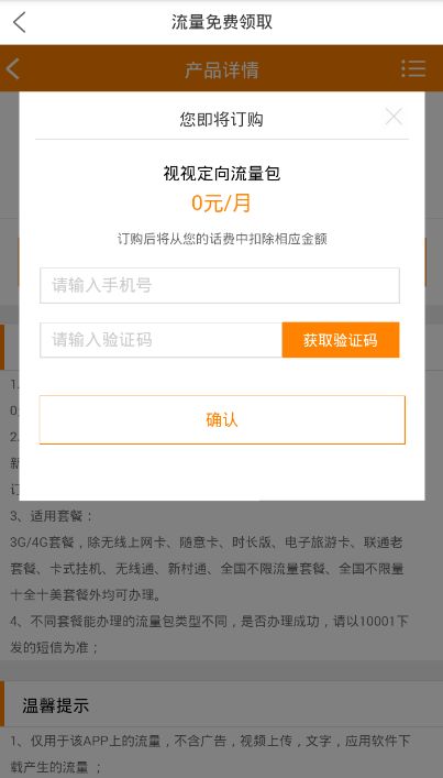 输入手机号和验证码即可领取视视定向流量包0元50g