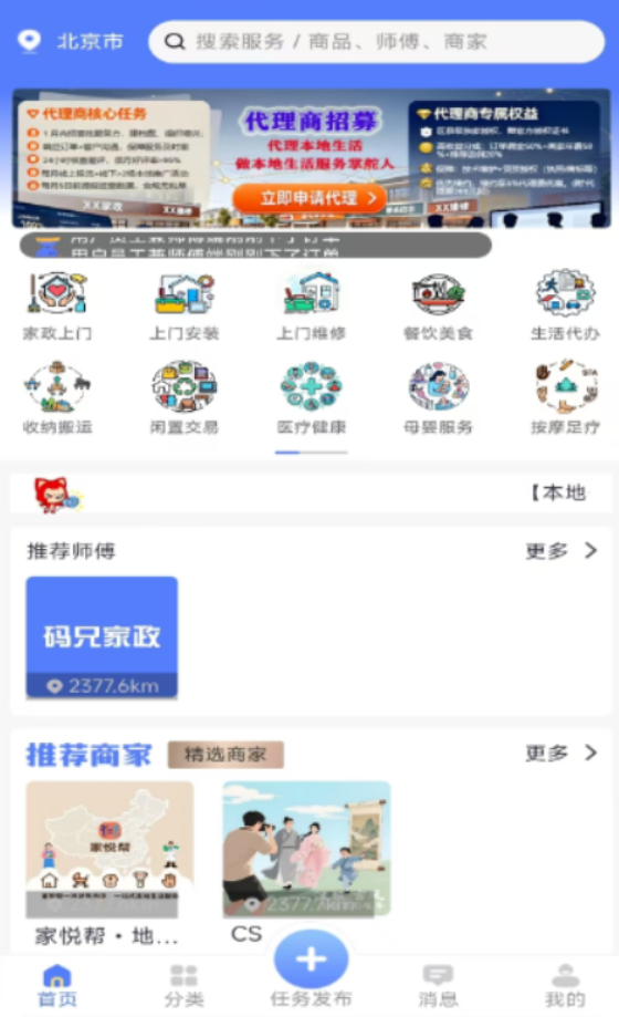 【在线找商品 / 服务】:一键查询附近及同城优质商品与服务,贴合需求;【在线找师傅 / 商家】:快速锁定附近及同城优质商家与专业师傅,放心选择不踩坑;【家政保洁】:深度保洁 / 家电清洗 / 收纳整理 / 日常保洁 / 开荒保洁;【上门安装】:家电安装 / 家具安装 / 灯具安装 / 卫浴安装 / 窗帘五金安装;【上门维修】:家电维修 / 管道疏通 / 开锁换锁 / 水电维修 / 防水治漏;【搬家拉货】:居民搬家 / 企业搬迁 / 同城闪送 / 人力搬运 / 整理打包;【生活代办】:跑腿代办 / 医院陪诊 / 政务代办 / 车辆事务代办 / 房屋事务代办;【餐饮美食】:小吃快餐 / 地方菜系 / 火锅烧烤 / 特色饮品 / 面包甜品;【医疗健康】:陪诊服务 / 护工护理 / 体检服务 / 口腔护理 / 中医养生;【母婴服务】:月嫂 / 母婴护理 / 产后恢复 / 催乳通乳 / 婴儿游泳;【按摩养生】:全身推拿 / 足疗 / 艾灸 / SPA / 康复理疗;【上门美业】:美甲 / 美睫 / 美容 / 美发造型 / 美妆彩妆 / 美体;【其他服务】:闲置交易 / 休闲娱乐 / 租赁服务 / 酒店民宿 / 车辆服务 / 商务服务 / 数字服务 / 法律服务 / 回收上门 / 乡村服务 / 图文印刷 / 家电数码 / 装修建材 / 培训 / 鲜花订购 / 婚庆 / 摄影 / 配镜服务 / 运动健身 / 宠物服务 / 拍照写真等;