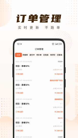 极大的方便每一位理疗师进行在线接单、订单管理、时间管理、评价管理等功能。