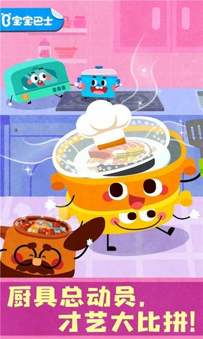 【宝宝神奇厨房】将厨具拟人化,通过帮助厨具们烹饪厨房美食,让宝宝学习做饭。