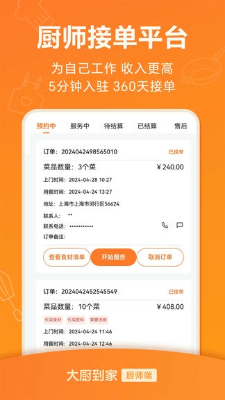 大厨到家大厨端 app软件亮点