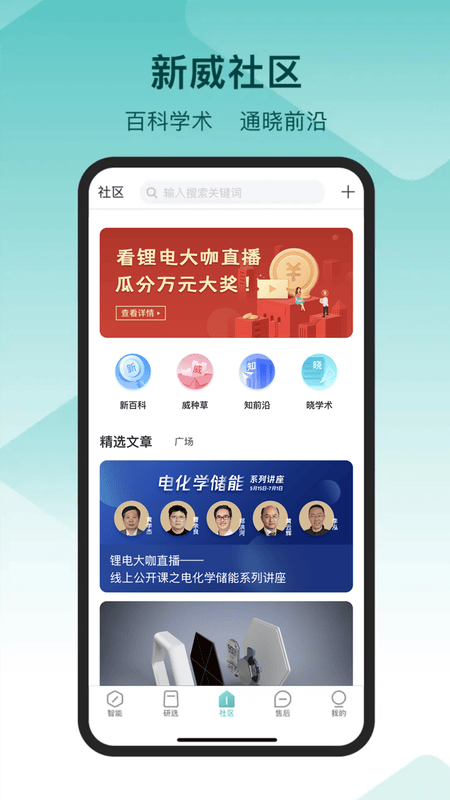 新威智能APP是新威全力打造的智能实验室服务平台。APP与新威电池检测设备的互联互通,让用户控制监测设备不受时间和空间的限制;在APP上提前预约实验室设备,无需现场排队,省时省力;一站式的实验室商城,轻松选购需要的设备材料;专业化的社区,分享你我的设备使用心得及经验;