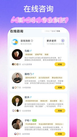 1、新增咨询服务用户可以与喜欢的老师沟通。