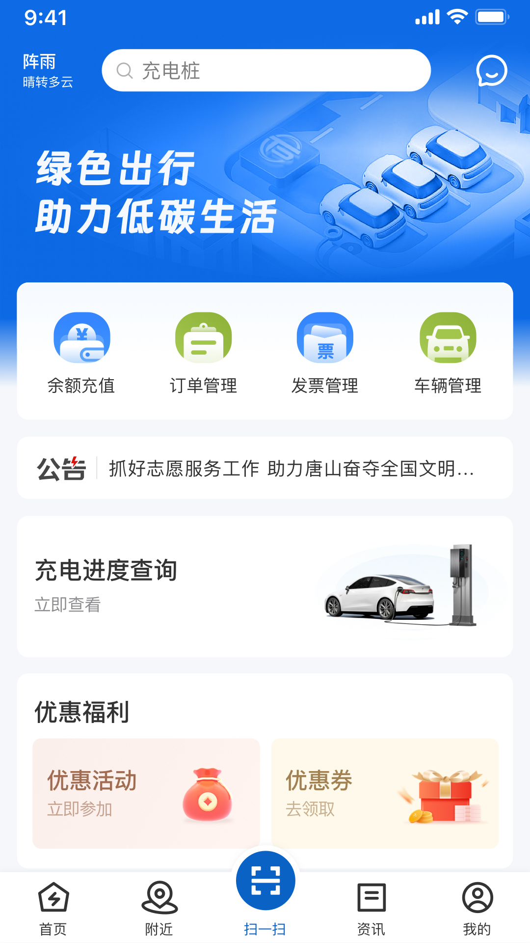唐山能源App,是一款打造新能源汽车充电场景的移动端应用,为唐山市民提供便捷的充电服务,助理市民绿色出行。市民通过唐山新能源App可以进行扫码充电、开具发票、查询订单等服务。