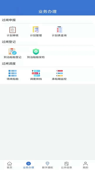 乌航通管理APP作为通航联合调度管理系统的移动端延申,将船舶过坝重点环节进行了移动端扩展,管理人员可使用该APP系统完成过坝现场的业务处理,解决了通航联合调度管理系统需计算机进行操作,移动不便的问题。