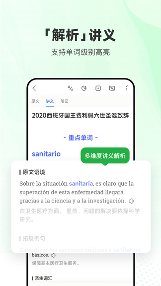- 与权威的西班牙语词典软件《西班牙语助手》无缝集成,查词典、背单词轻松搞定。
