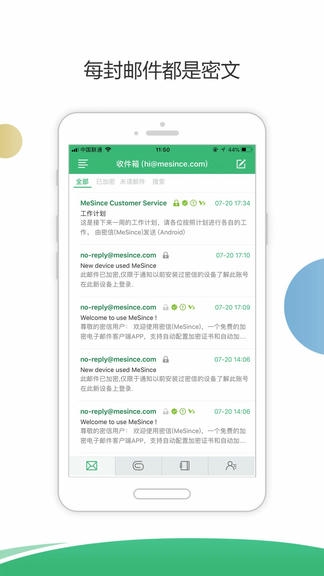 密信(MeSign)是电子邮件客户端软件,让您自动加密所有电子邮件,并且自动配置加密证书和自动为每封电子邮件盖上时间戳。