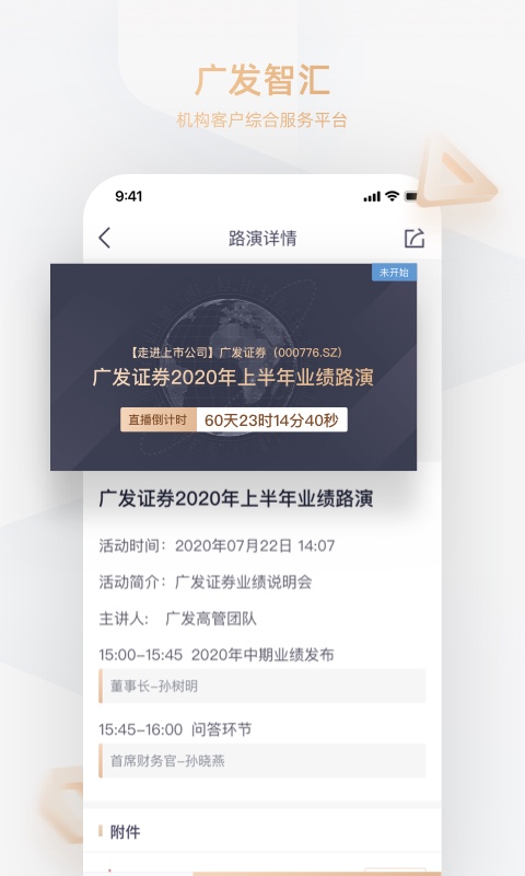 广发研究中心多地活动在线查看,一键报名,包括线上会议、调研活动、大型策略会及直播回放等精彩活动尽在广发智汇,满足客户各种使用场景
