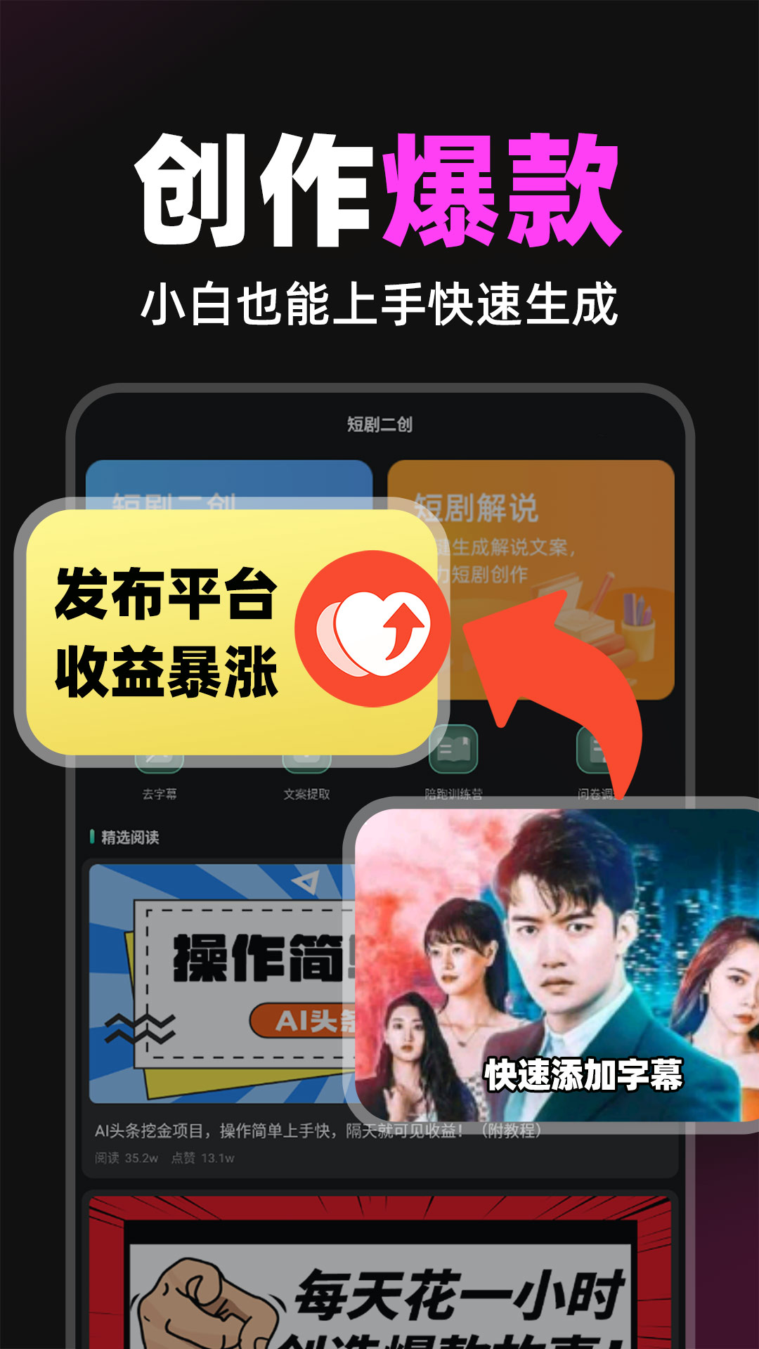 【多样变现课堂】提供丰富的变现课程,涵盖短剧解说技巧、内容创作策略、平台运营规则等,帮助用户提升创作能力和变现能力。