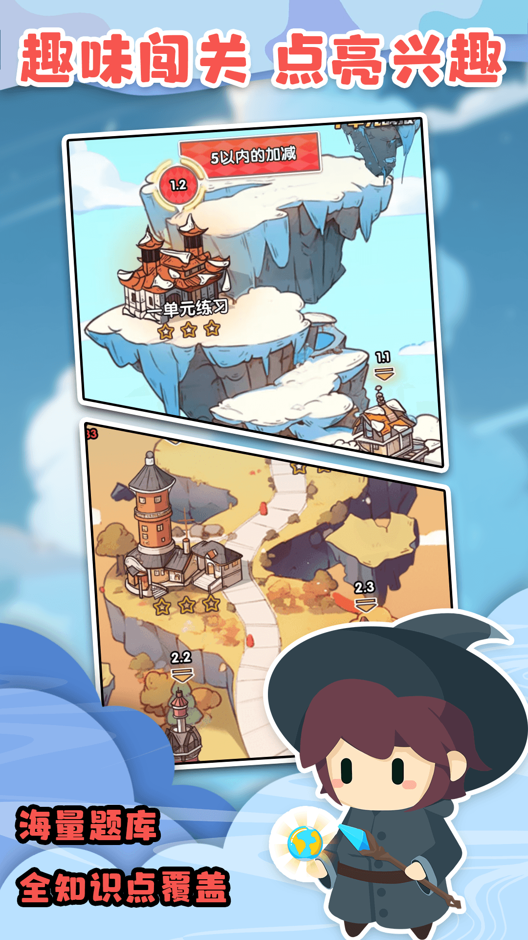 口算关卡:画质精致,趣味闯关。每天让孩子玩1~2局,即可完成1天的口算任务,动态出题,高效提升。