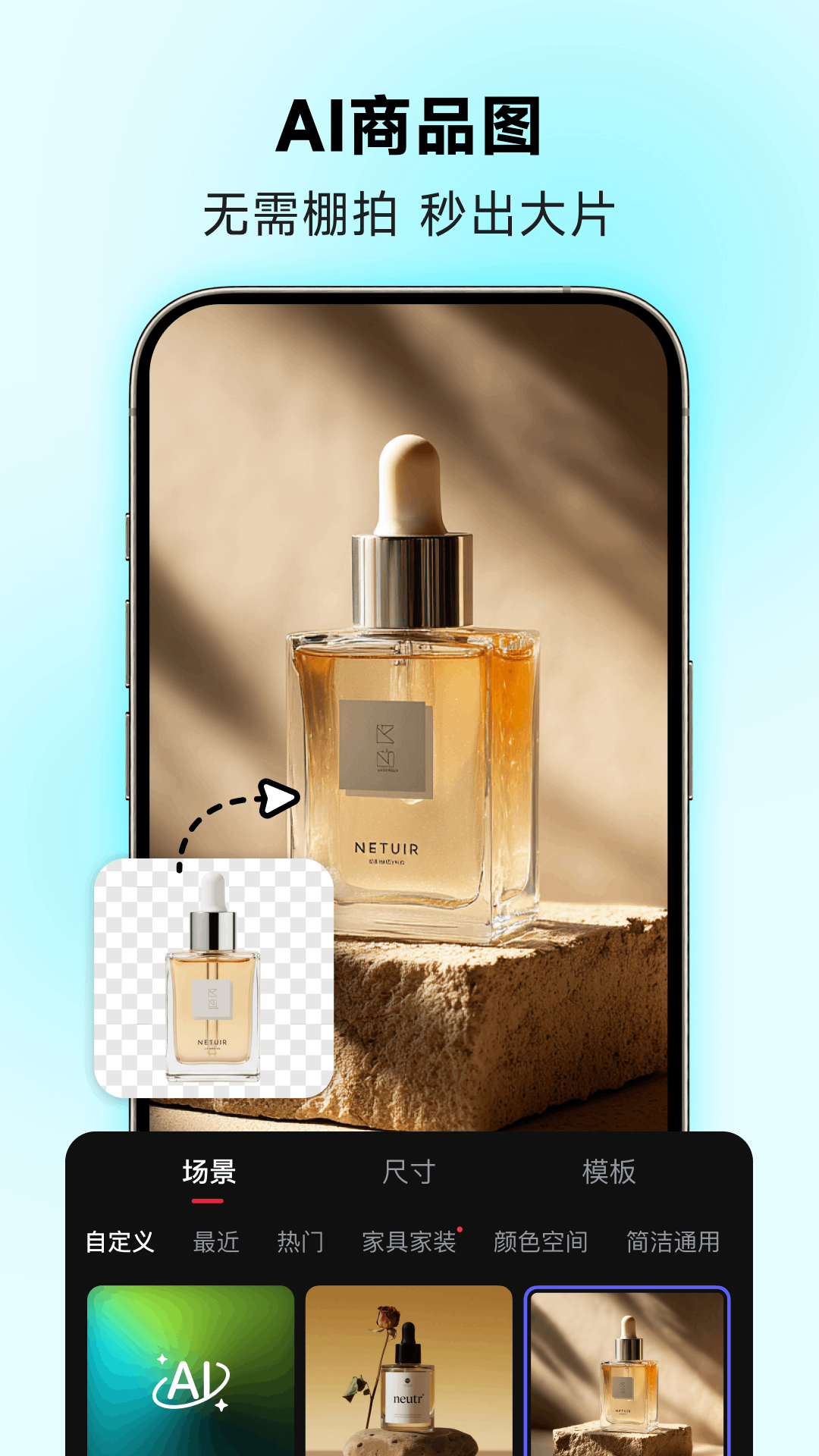智能抠图:全品类智能识别,2秒抠图。