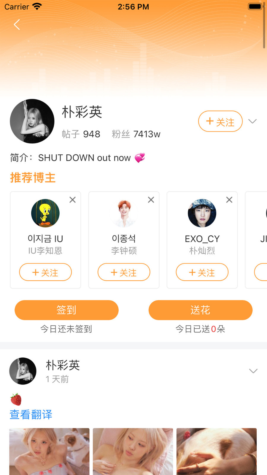 可以关注你的爱豆,每日更新ins爱豆动态,并实时推送,不错过爱豆的每个点滴。