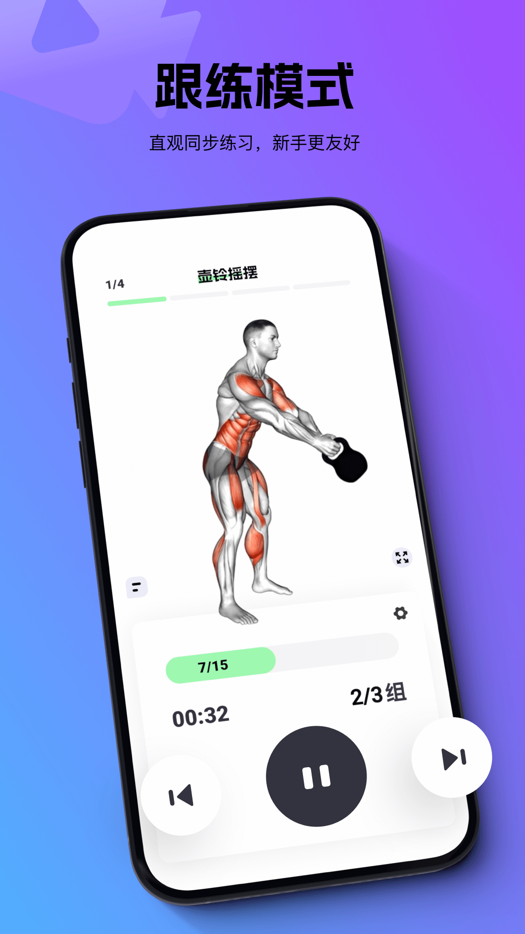 ·沉浸式视频教学,配合专业语音提醒,跟随节奏完成每个动作,训练更高效。