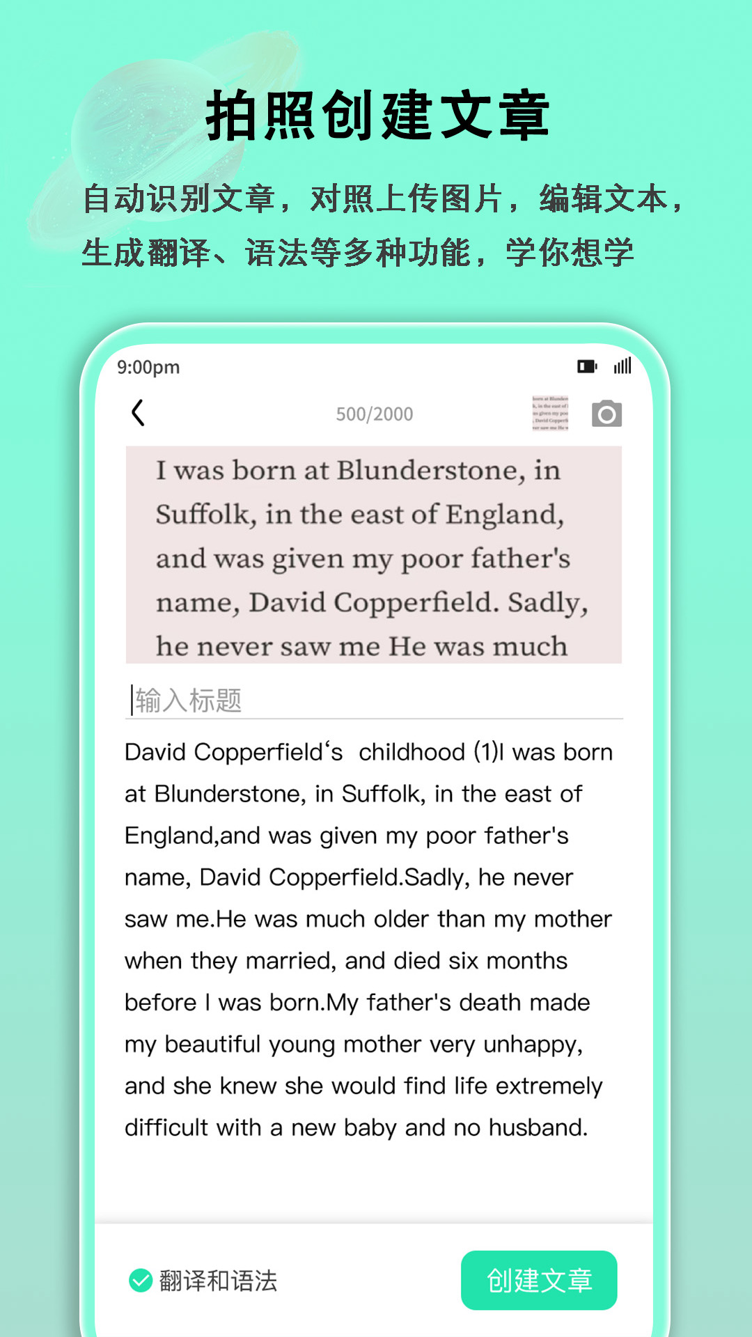 可拍照上传英文,查询词典,也可以用语法分析和翻译,方便学习更多的内容。