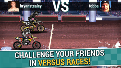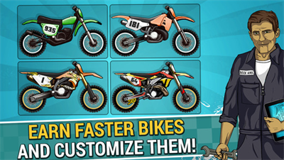 4、带领玩家在职业生涯和时间竞速两个模式之中,去体验极速刺激而且疯狂的越野摩托车竞赛。