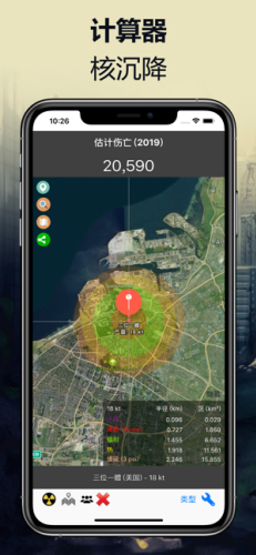 1、玩家可以自由的选择核弹的当量,越多爆炸效果就会越大,造成更多的伤亡效果。