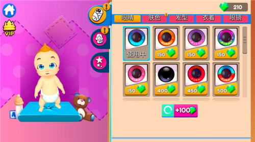 根据自己的喜好自定义宝宝的外表。我们有很多发型和颜色,还有婴儿衣服和皮肤,请随时尝试并玩得开心。