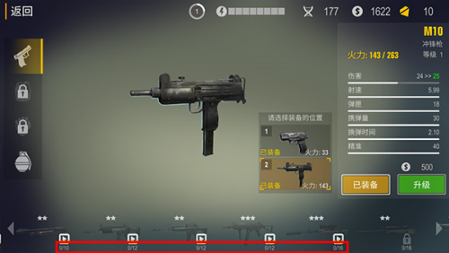 2、进入武器界面后可装备或升级武器