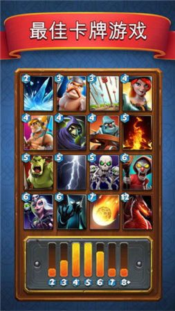 2、赢取奖杯,争夺全球排名,打开宝箱来发现和解锁强大的勇士和法术,你能获得稀有的传奇卡牌;