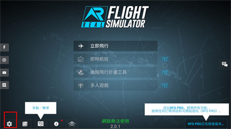 1、首先进入rfs模拟飞行游戏首页,点击左下角的“设置”。