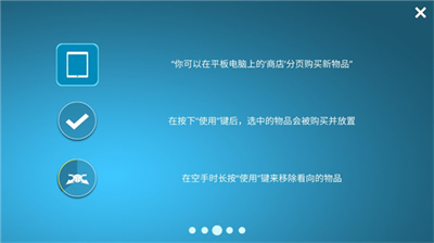 1、你可以在平板电脑上的商店分页购买新物品,在按下“使用"键后,选中的物品会被购买并放置,在空手时长按"使用"键来移除看向的物品。