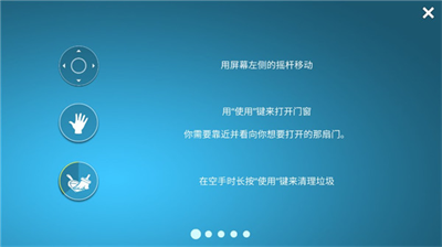 5、用屏幕左侧的摇杆移动,用"使用"键来打开门窗,你需要靠近并看向你想要打开的那扇门,在空手时长按"使用"键来清理垃圾。