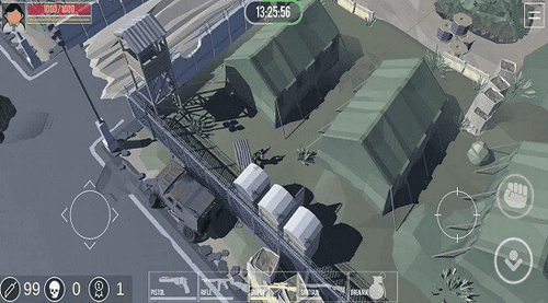 1、俯视2.5D视角切换,轻松看到战场上的大致情况,快速找到敌人并消灭它,需要你有足够精准的枪法。