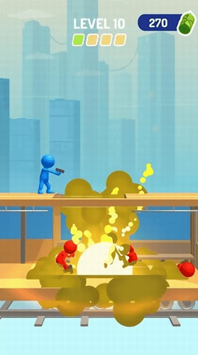 1、玩家可以利用不同的地形去进行射击,快速的去击败所有的敌人,取得胜利。