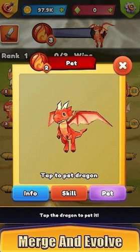 合并龙大师汉化版是一款非常好玩的休闲养成游戏,游戏没有任何的操作难度,适合所有年龄段的玩家,在游戏中玩家需要选择一头你喜欢的喷火龙,然后和它一起进行闯关挑战和合成,从小开始培养,还能将相同品种相同等级的火龙进行合成,去合成更高阶的火龙,训练强化龙的作战能力,打败更多敌人赢取丰厚奖励,购买新的龙和装备,游玩的过程会非常的有意思,挑战感十足,感兴趣的小伙伴们快来下载体验吧!