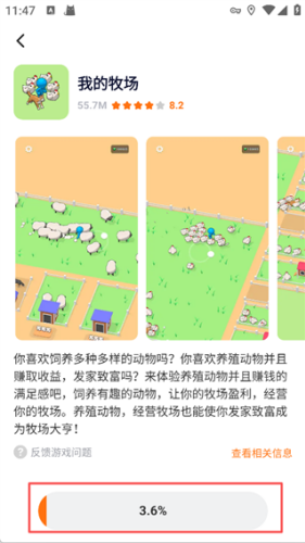 2、在搜索栏中输入想要体验的游戏名称,例如【我的牧场】点击游戏右侧的“打开”按钮。