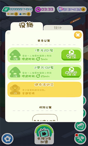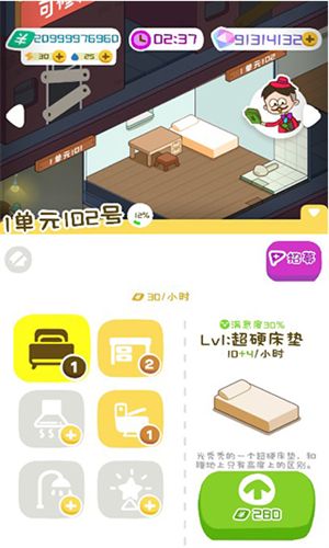 3、除了可以对房间里面的物品升级,还可以对整栋的楼房改造;