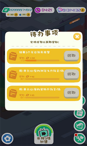 2、随着进度的不同,我们将有不同的任务需要完成。每完成一项任务,我们的收入就会更高。