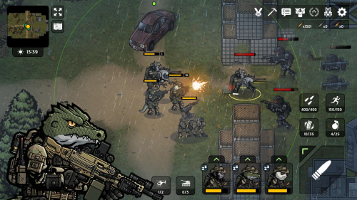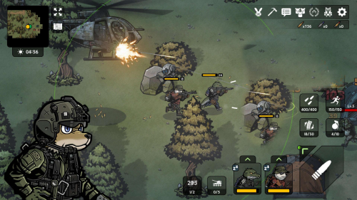 4、每个角色都有不同的能力,有的侧重攻击,有的侧重防御。卡通色调中加入了军事风格的色彩。