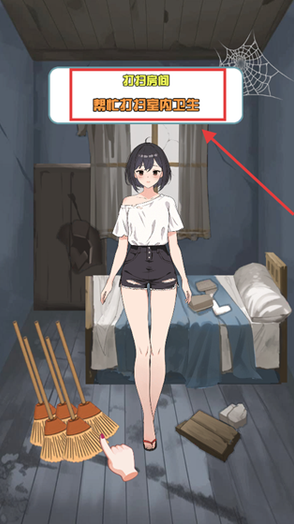 1、收到打扫房间任务后,点击地上的扫帚,开启室内卫生清洁,完成可提升与阿珍亲密度。