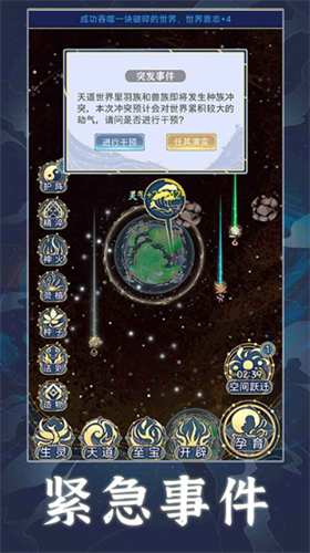 通过建立和升级各种法则,以及修复空间裂痕和建设护阵来使得世界的发展更加稳定,同时还能通过投放稀有神物等操作引起生灵种族之间的争夺,形成合理的良性竞争以便在某些阶段能更快地成长。