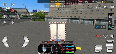 我们先看右边的这五个按钮,从左到右,从上到下分别是车灯,喇叭,前进还是后退的按钮,刹车,油门,点击车灯既可以打开卡车的车灯了,点击喇叭可以按响喇叭,点击前进和后退的按钮,可以选择前进还是倒车,前进会显示N,后退会显示R,点击刹车可以将卡车刹住,点击油门可以选择前进和后退,左边的这个方向盘可以让我们控制方向。向左打方向盘是往左走,想右打方向盘是向右走。上路以后就可以在路上驰骋观赏风景了,街上的风景还是非常好看的,小伙伴们可以在游戏里自己驾驶走走逛逛。
